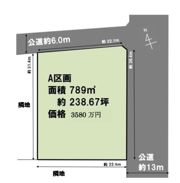 土地面積 | 789m² (238.67坪) | 坪単価 | 13.74万円 /坪 |