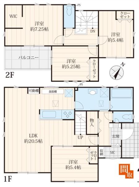 築年月 | 2024年5月築 | 間取り | 4LDK (LDK20.5/洋室5.4/洋室7.25/洋室5.4/洋室5.25) | ||