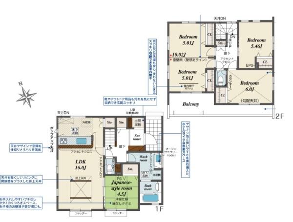 築年月 | 2025年12月築 | 間取り | 4LDK (LDK16/和室4.5/洋室6/洋室5.46/洋室10.02) | ||