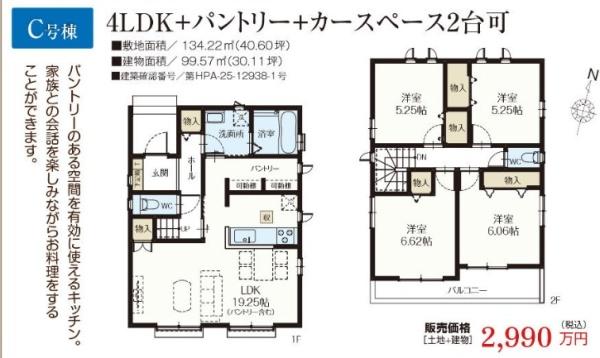 築年月 2026年2月築 間取り 4LDK (LDK19.25/洋室6.62/洋室6.06/洋室5.25/洋室5.25)