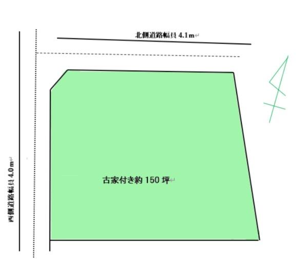 | 現況/引渡し | 上物あり/相談 | 接道状況 | 接道: 西 公道 道路幅: 4m 接道: 北 公道 道路幅: 4m |