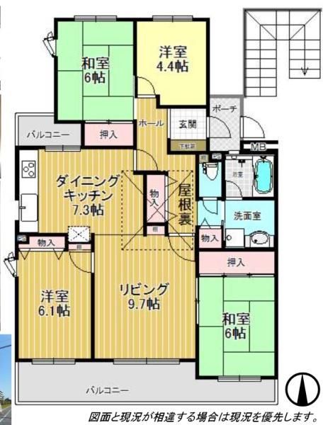 専有面積 | 92.8u | 間取り | 4LDK (LDK17/和室6/和室6/洋室6.1/洋室4.4) | ||