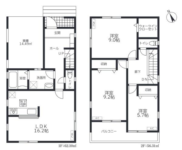 築年月 2026年5月築 間取り 3LDK (LDK16.2/洋室9.2/洋室9/洋室5.7)