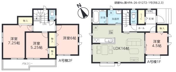 | 築年月 | 2026年5月築 | 間取り | 4LDK (LDK16/洋室4.5/洋室7.25/洋室6/洋室5.25) | ||