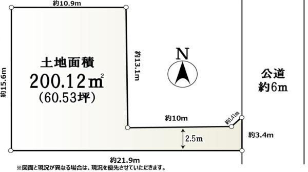 | 現況/引渡し | 更地/相談 | 接道状況 | 接道: 東 3.4m 公道 道路幅: 6m |
