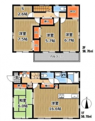| 採光面 | 東南 | 構造/階数 | 木造/地上2階建 |