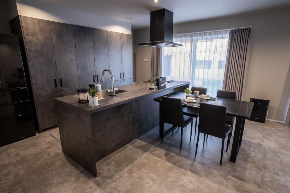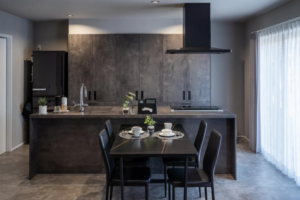 設備では、デザイナーズキッチンのグラフテクトのI型をアイランドキッチンとして配置し、