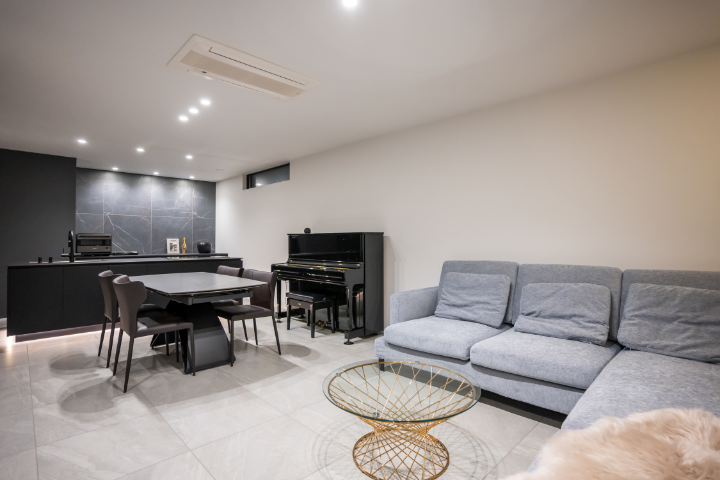 換気扇やエアコンを埋め込みで施工することで、生活感のない空間デザインを演出。