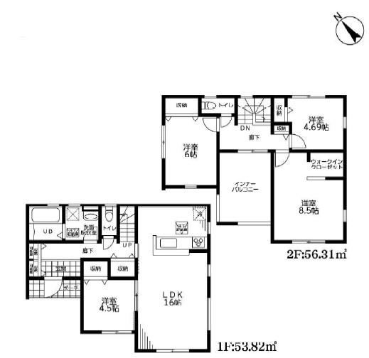 | 築年月 | 2025年12月築 | 間取り | 4LDK (LDK16/洋室4.5/洋室8.5/洋室6/洋室4.69) | ||