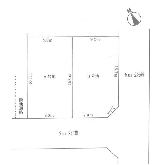 | 現況/引渡し | 更地/相談 | 接道状況 | 接道: 東南 公道 道路幅: 6m 接道: 南西 公道 道路幅: 6m |