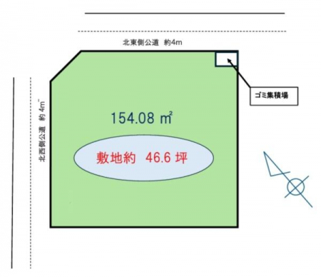 | 現況/引渡し | 更地/相談 | 接道状況 | 接道: 東 公道 道路幅: 6m 接道: 北 公道 道路幅: 6m |