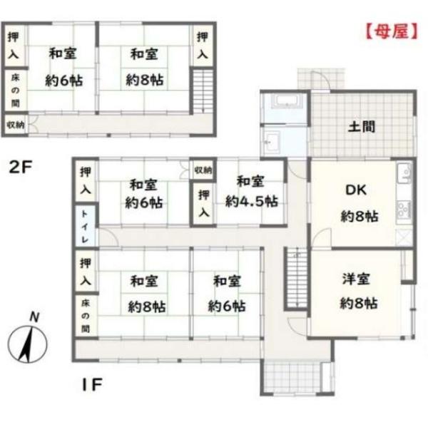 築年月 1973年10月築 間取り 7DK (DK8/洋室8/和室8/和室6/和室6/和室4.5/和室8/和室6)