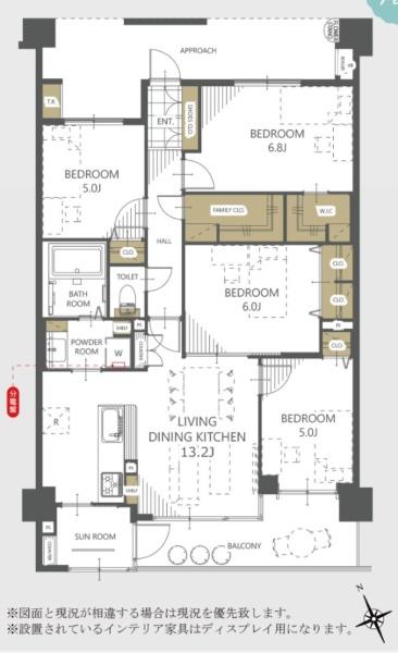 専有面積 | 86.58u | 間取り | 4LDK (LDK13.2/洋室6.8/洋室6/洋室5/洋室5) | ||