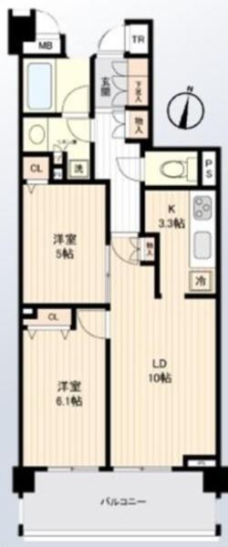 専有面積 | 57.04u | 間取り | 2LDK (LDK13.3/洋室6.1/洋室5) | ||