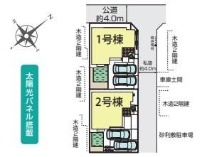 | 接道状況 | 接道: 東 私道 道路幅: 4m 接道: 北西 公道 道路幅: 4m |