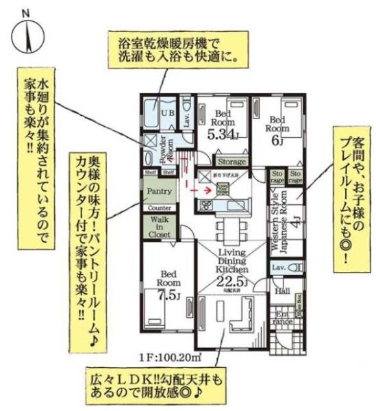 築年月 2026年4月築 間取り 4LDK (LDK22.5/和室4/洋室7.5/洋室6/洋室5.34)