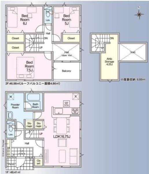 築年月 2026年6月築 間取り 3LDK (LDK16.75/洋室7.5/洋室6/洋室5)