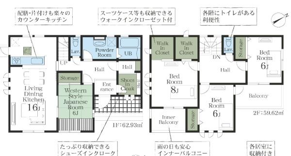 | 採光面 | 東南 | 構造/階数 | 木造/地上2階建 |