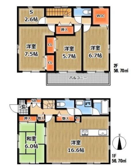| 築年月 | 2019年6月築 | 間取り | 4SLDK (LDK16.6/和室6/洋室7.5/洋室6.7/洋室5.7/S2.6) | ||