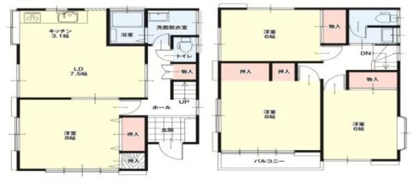 | 築年月 | 1992年8月築 | 間取り | 4LDK (LDK10.6/洋室8/洋室8/洋室6/洋室6) | ||